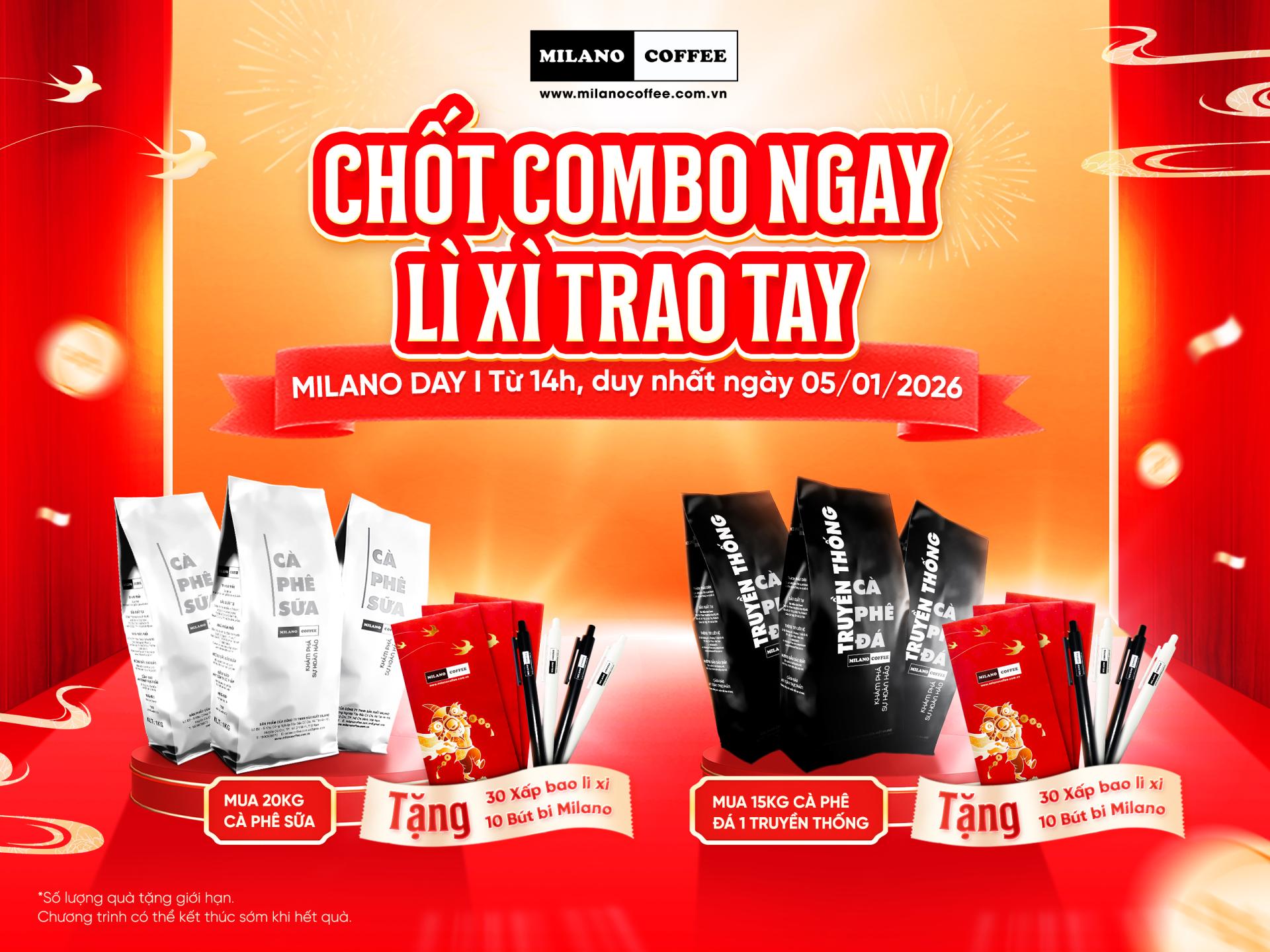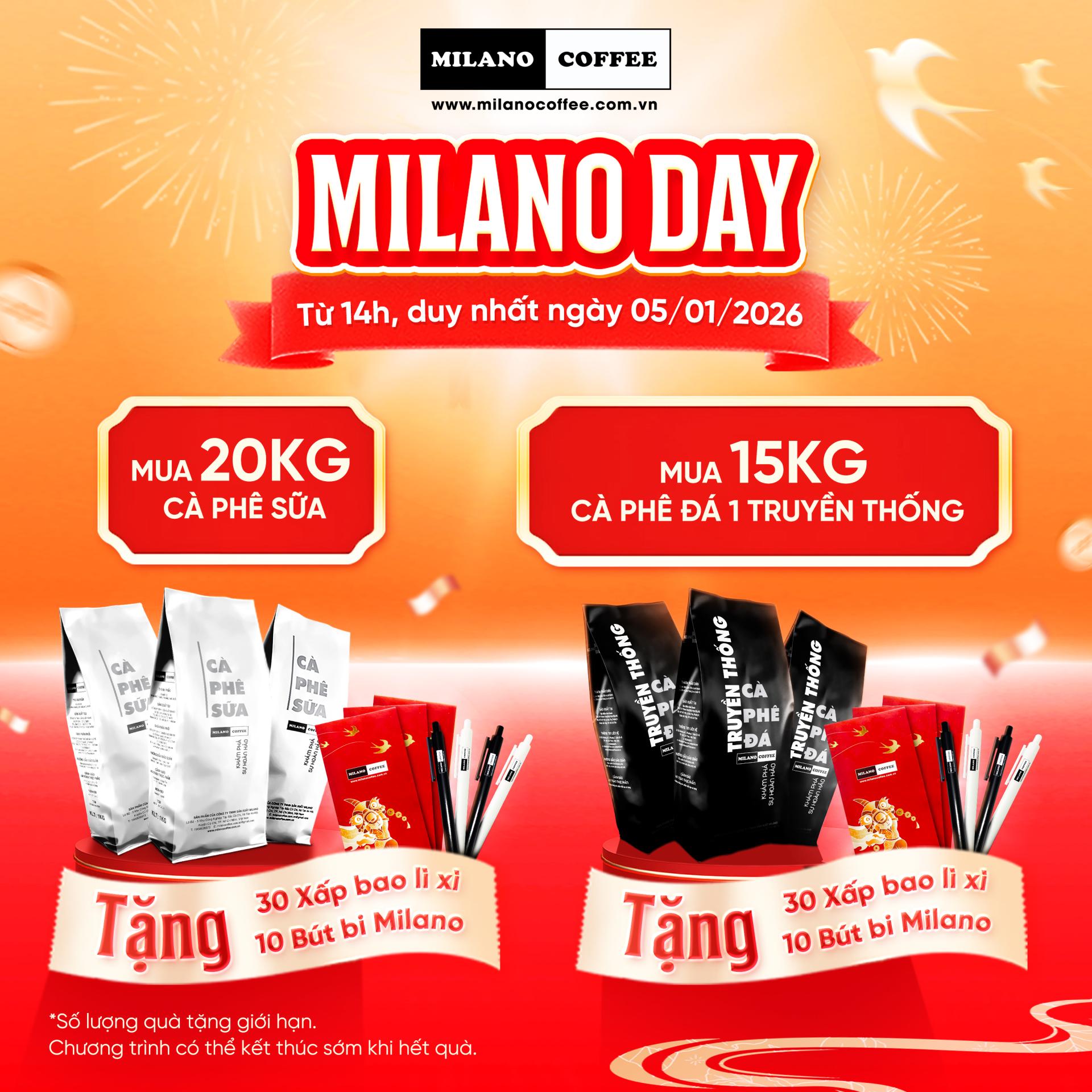 Từ 14h, duy nhất ngày 05/01/2026, Milano Coffee triển khai chương trình Milano Day: