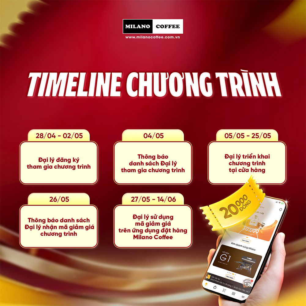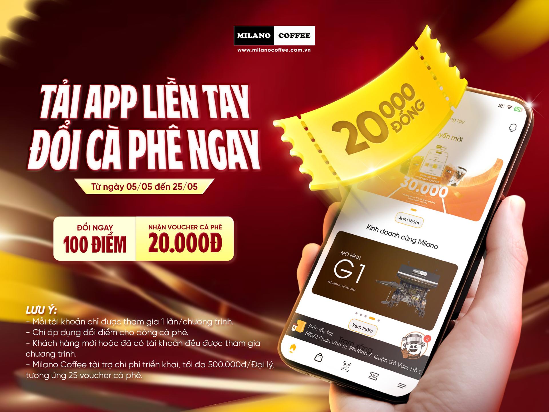 Từ ngày 05/05 đến 25/05, Milano Coffee triển khai chương trình: “TẢI APP LIỀN TAY – ĐỔI CÀ PHÊ NGAY” dành cho khách hàng:
