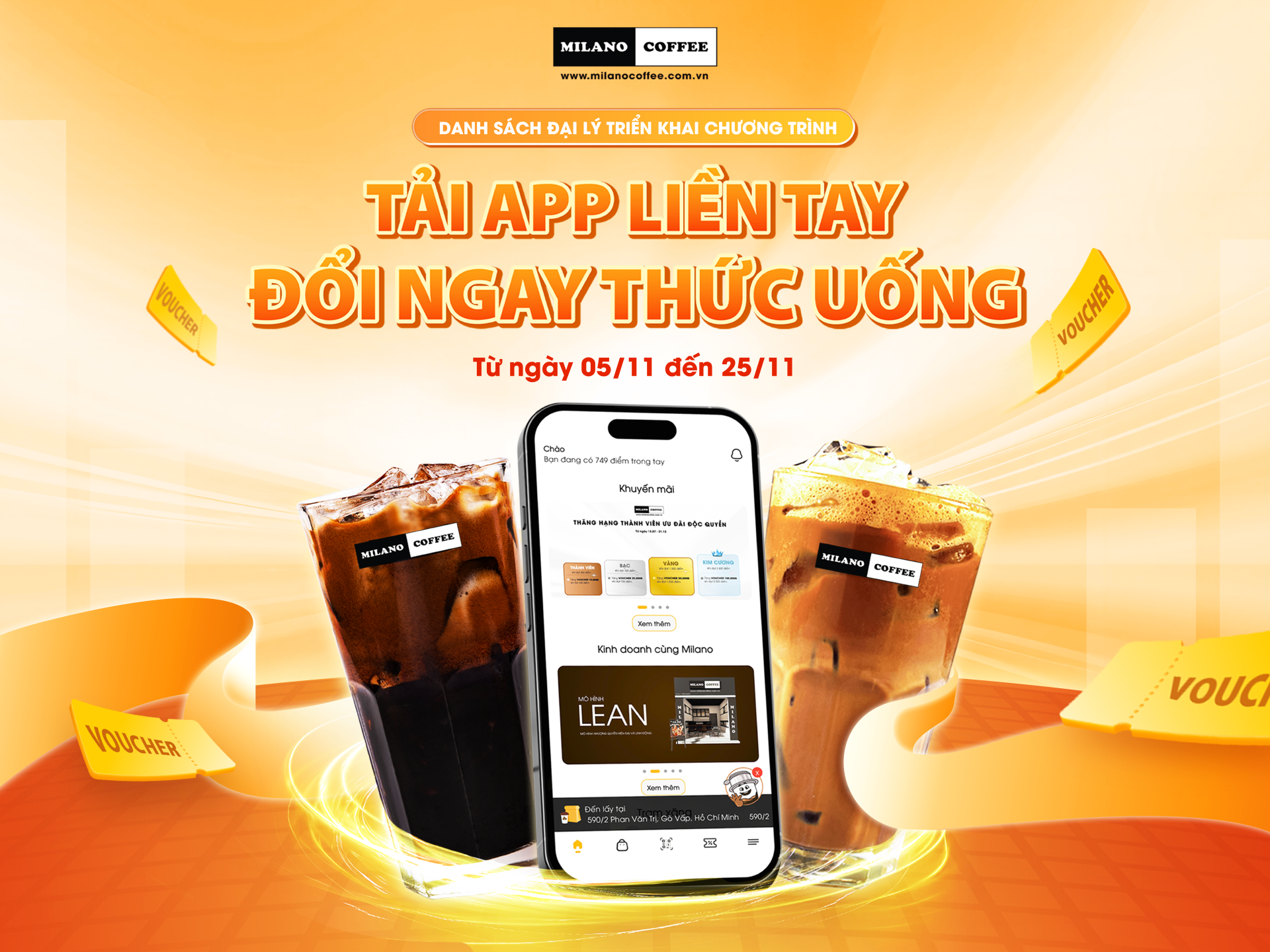 Milano Coffee công bố danh sách Đại lý triển khai chương trình “Tải app liền tay - Đổi ngay thức uống”.
