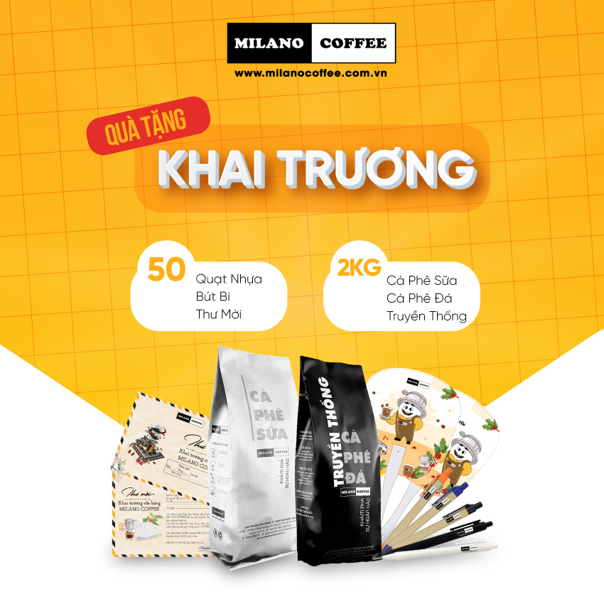 Các Đại lý khai trương trong tháng 08 sẽ nhận được 01 combo quà tặng đặc biệt từ Milano Coffee, bao gồm: