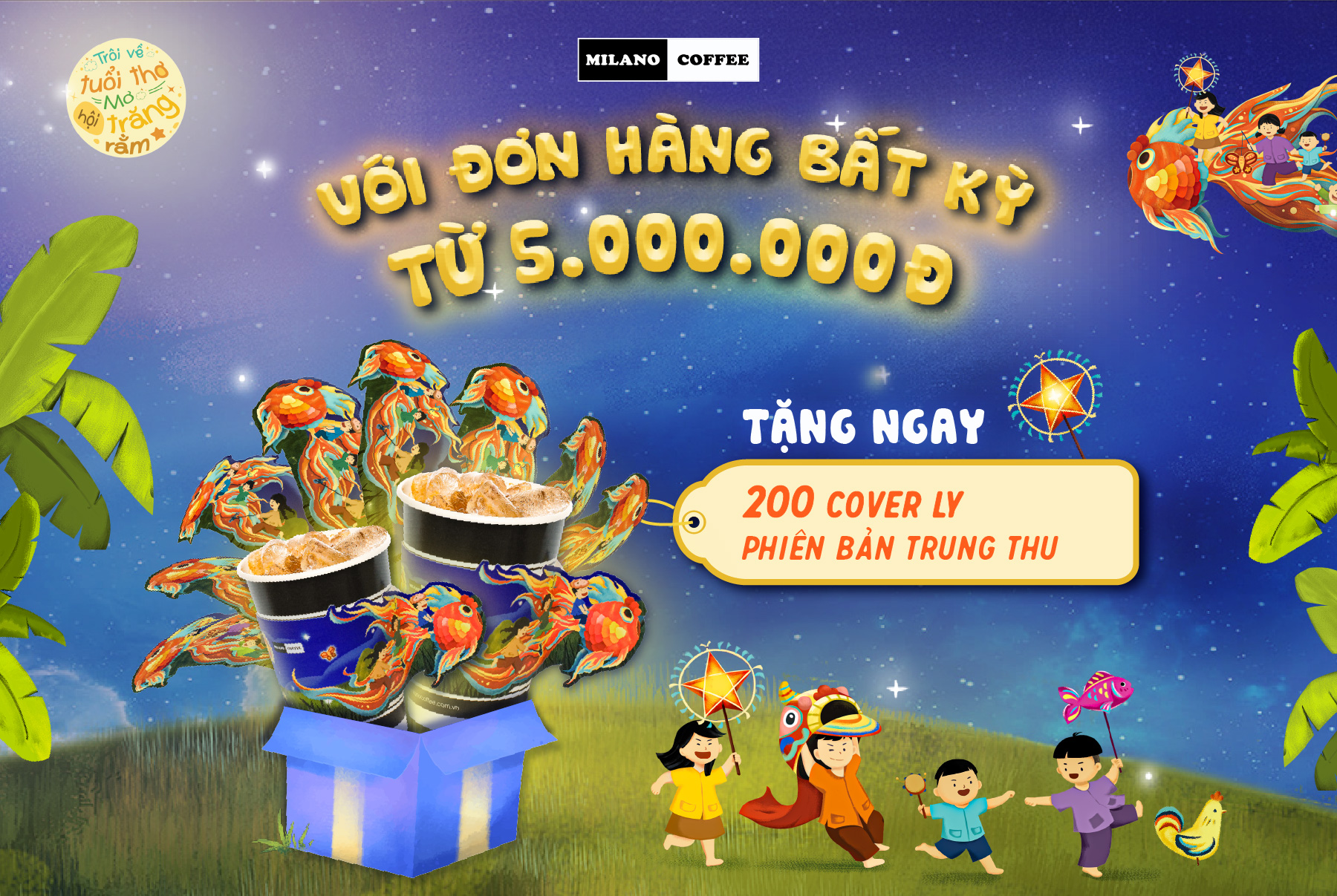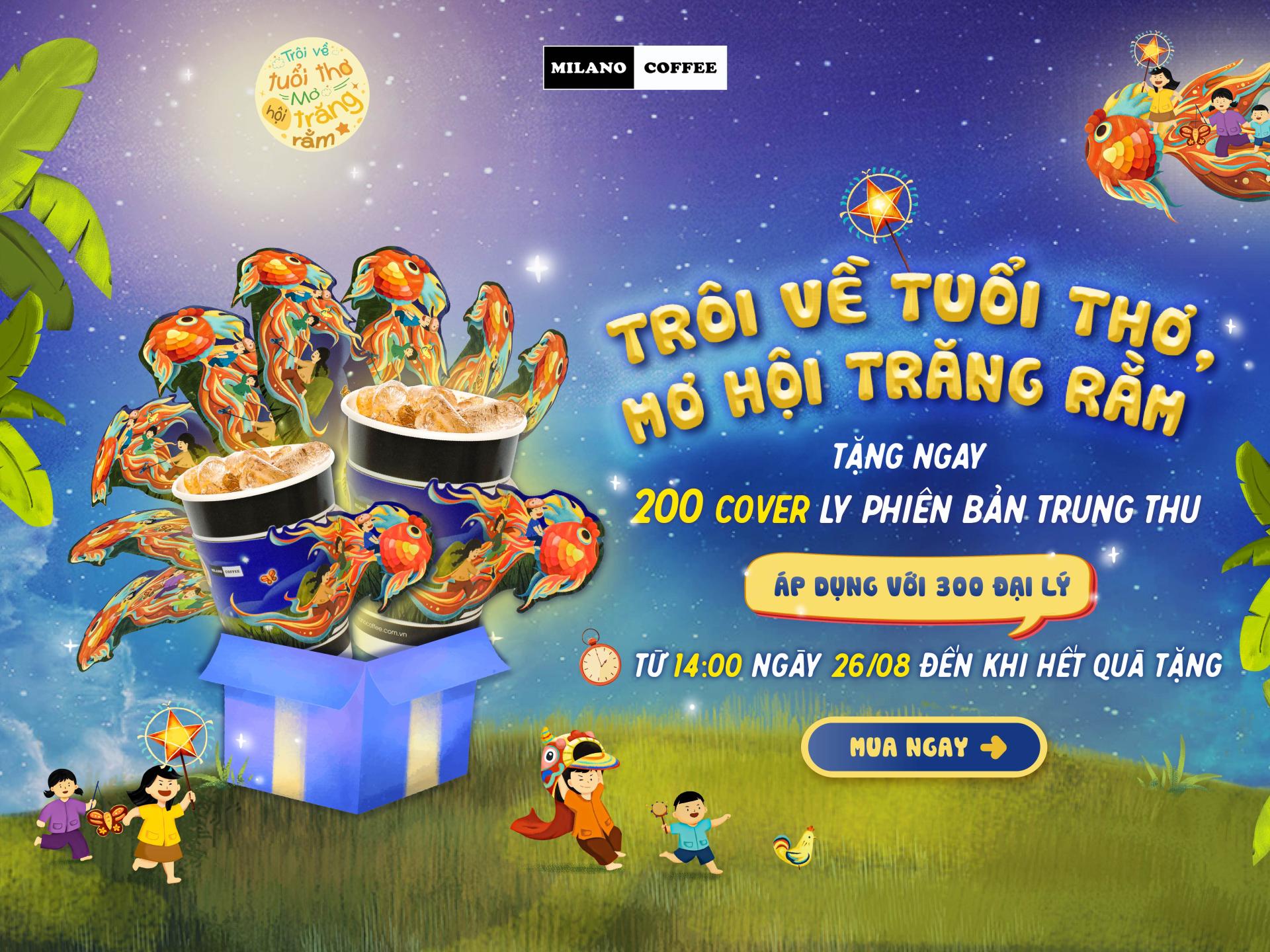 Từ 14h ngày 26/08 đến khi hết quà tặng, Quý Đại lý đặt đơn hàng bất kỳ từ 5.000.000Đ. MILANO COFFEE tặng ngay 200 cover ly giấy phiên bản Trung thu siêu đặc biệt.