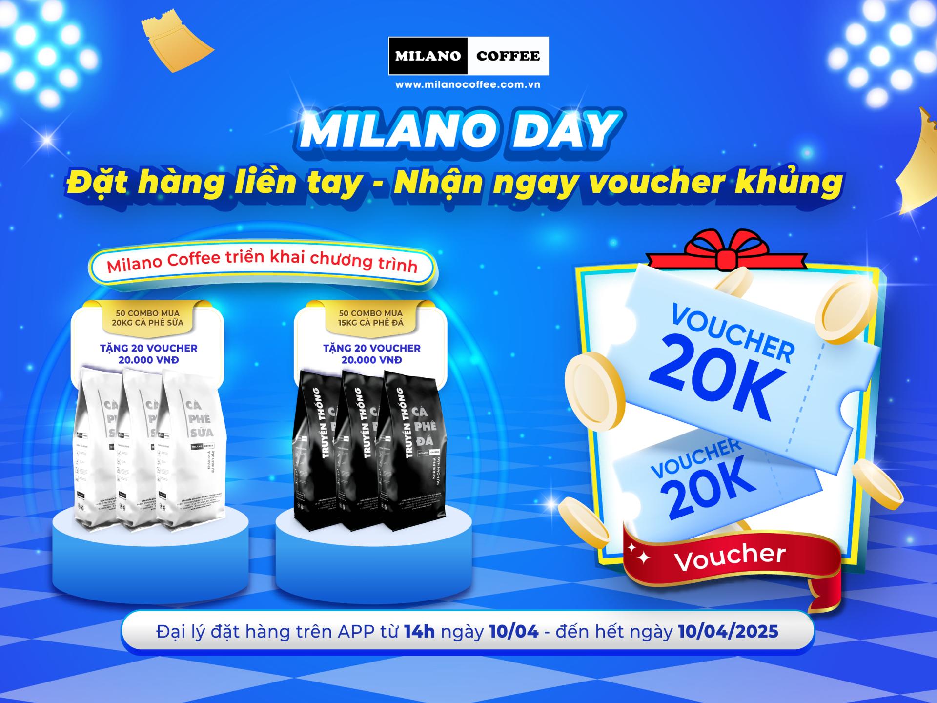 - Từ ngày 16/04 đến hết ngày 22/04/2025: Đại lý triển khai chương trình tặng voucher khi đặt hàng tại cửa hàng trên ứng dụng Milano Coffee - Tích điểm.