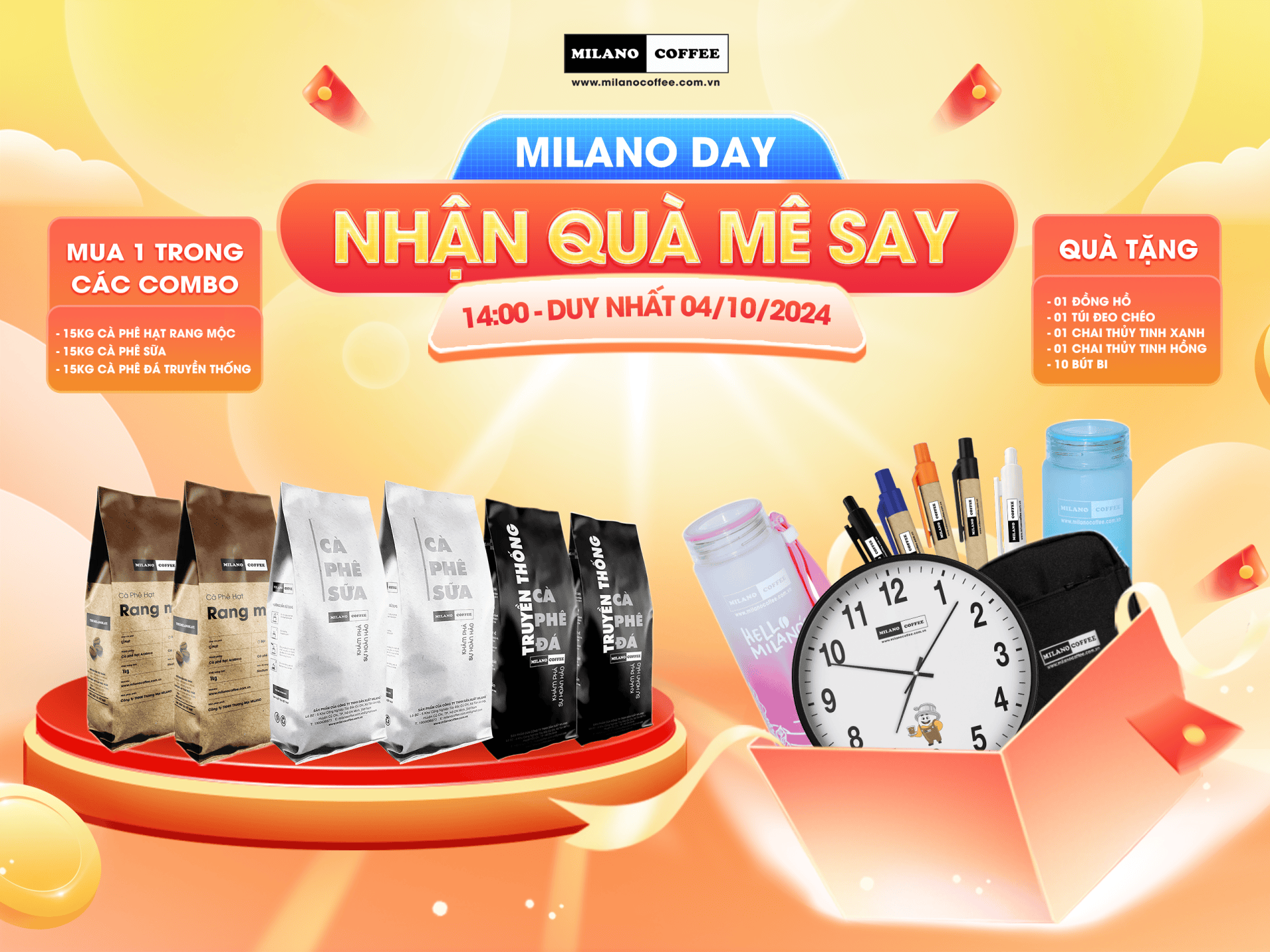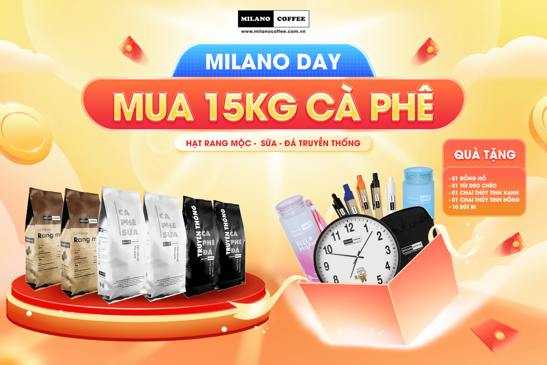 Quà tặng sẽ được gửi kèm đơn hàng và Milano Coffee không hỗ trợ chi phí gửi quà.
