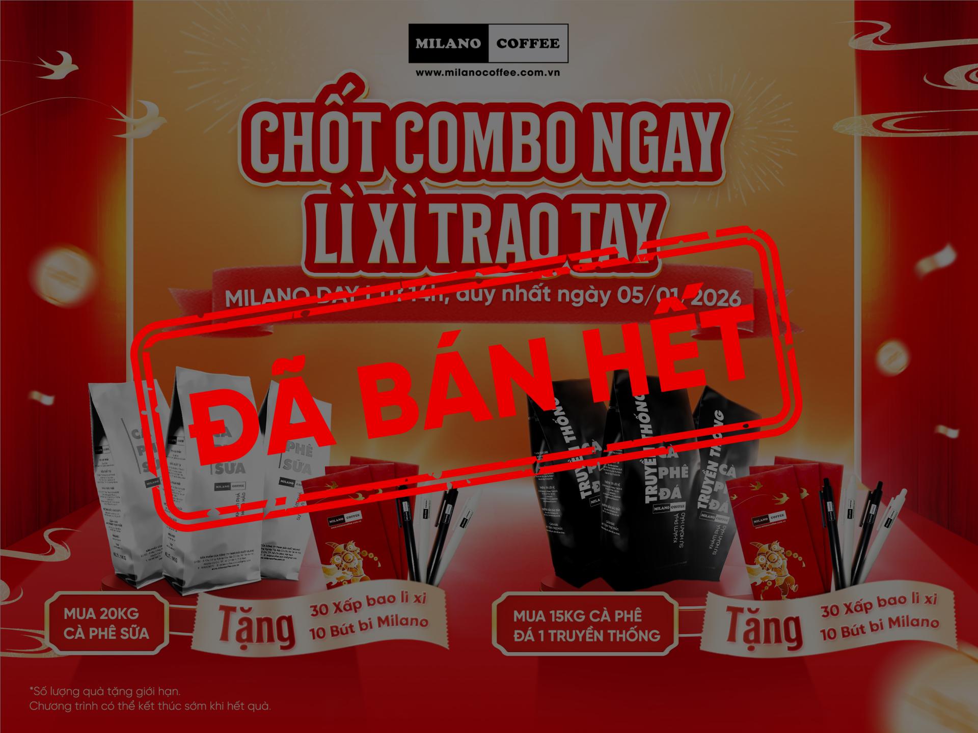 Milano Coffee thông báo chương trình Milano Day “Chốt combo ngay - Lì xì trao tay’’ đã bán hết và kết thúc sớm hơn dự kiến.