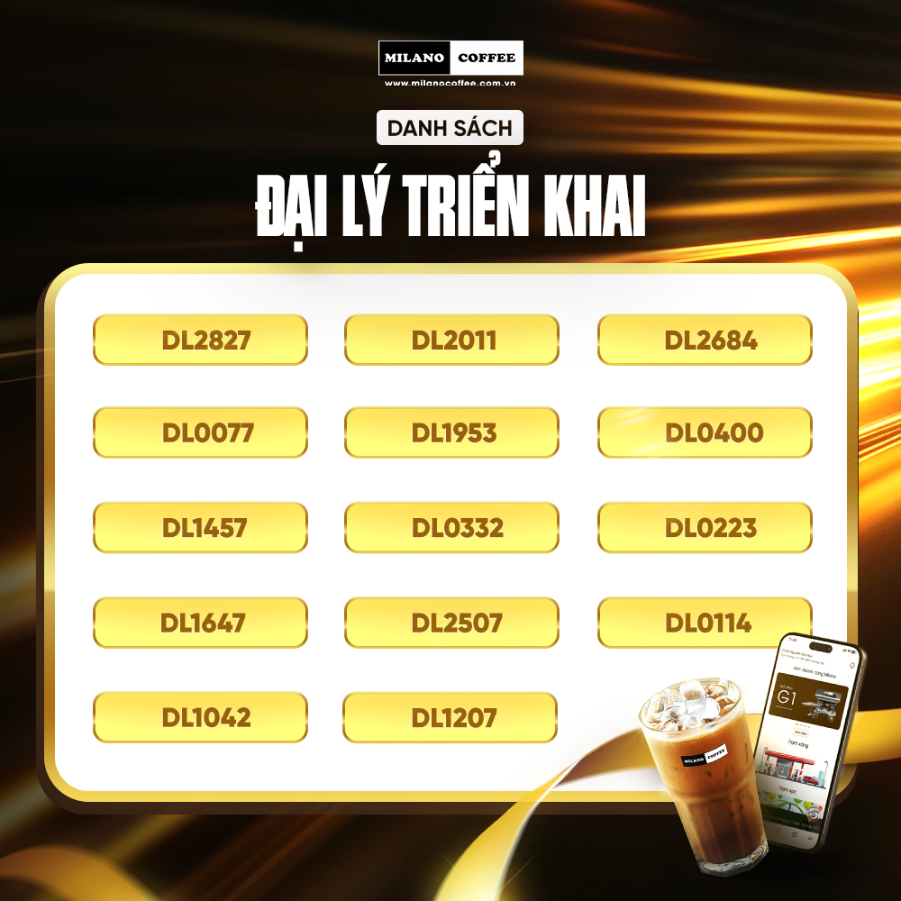 Milano Coffee công bố danh sách Đại lý triển khai chương trình “Bứt phá dẫn đầu – Cán đích nhận thưởng”.