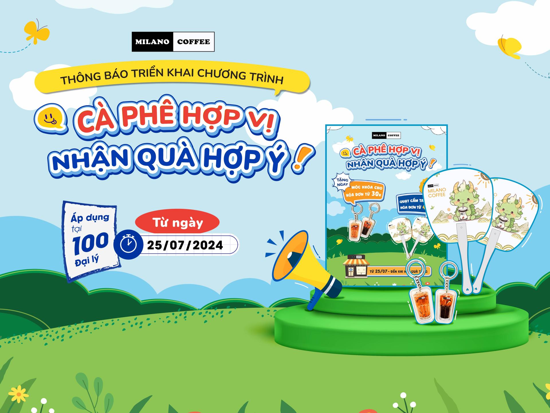 MILANO COFFEE xin thông báo triển khai chương trình “CÀ PHÊ HỢP VỊ - NHẬN QUÀ HỢP Ý” từ ngày 25/07/2024.